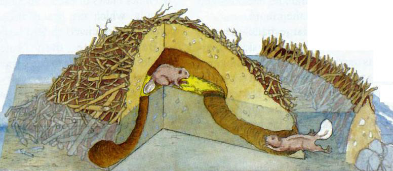 Beverhytta består ofte av to rom. Et rom for å tørke seg i etter at man har badet, og et oppholdsrom. Hver beverfamilie har sitt hjem, men de svømmer gjerne på besøk til hverandre.