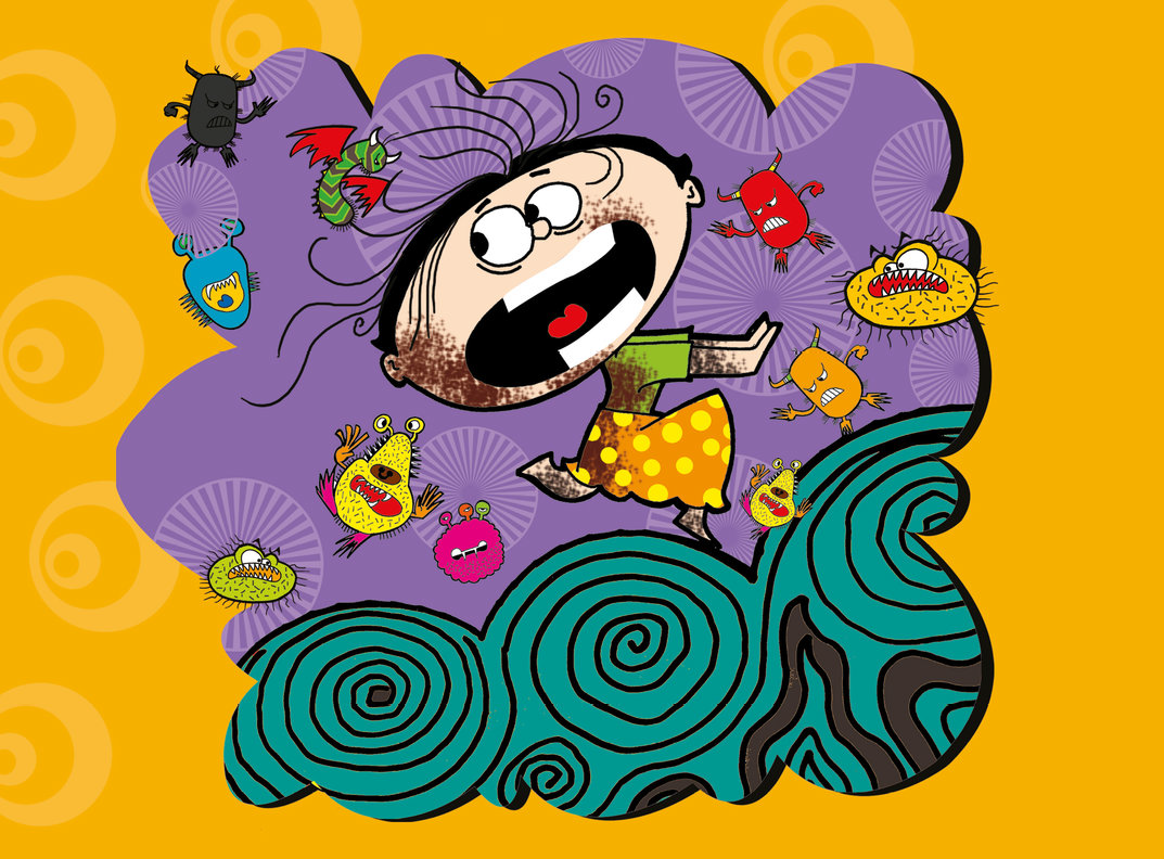 De lumske bakteriebrødrene Busa, Bæsju, Æsju, Usjen, og alle de slemme vennene deres hadde omringet henne. Åh nei!