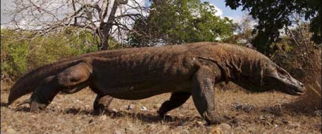 På engelsk heter komodovaranen «Komodo dragon», da den jo ligner på en eventyr-drage. Komodovaraner er gigantiske øgler, og er de største øglene som finnes på de indonesiske øyene Komodo, Rinca, Flores, Gili Motang og Padar. De er en del av øglefamilien Varanidae, og kan bli opp til 3 meter lange og veie 70 kg. Siden de er så store dominerer de områdene de lever i fullstendig.