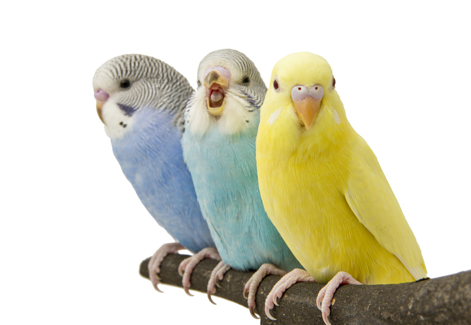 Unge undulater har en rosaaktig lyseblå farge på dette båndet.